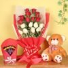 18 Roses Bouquet in a Basket & Box of Sixteen Ferrero Rocher Chocolates