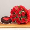 Bunch of 12 Red Roses and Half Kg Chocolate Cake with a Red Heart.